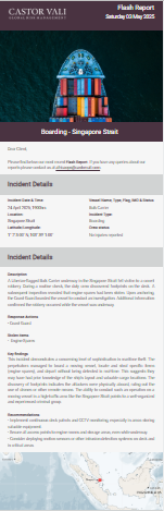 Castor Vali flash report regarding boarding at the Singapore Strait.