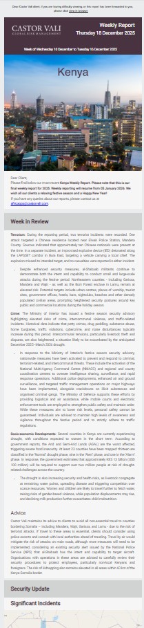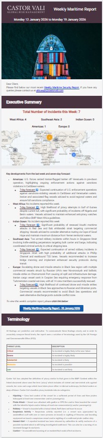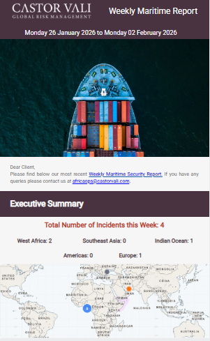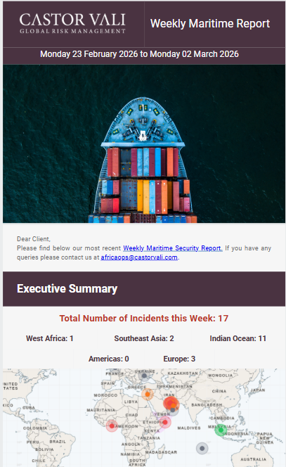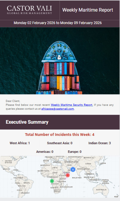 Indian Ocean VRA/HRA: Three alerts were reported this week.