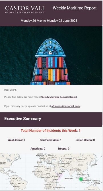Indian Ocean VRA/HRA: Two alerts were reported this week.